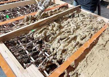 The prefabricated components, measuring 3.6 meters by 1.2 meters, are dried, transported to the construction site, and assembled within the timber frame. Their modular design simplifies installation while enabling reuse, ensuring a closed material cycle that minimises waste.