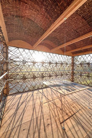 The unique integration of earth and willow enables the ceiling components to handle tensile forces through the willow reinforcement, while the earth works under compression, offering a sustainable alternative to steel-reinforced concrete elements.