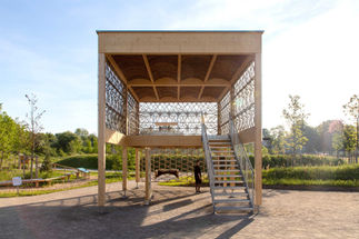 The project builds upon the combined expertise in sustainable construction at KIT, integrating seven KIT professorships, and the industrial partner FibR GmbH. This transformative project was showcased at the Landesgartenschau in Wangen im Allgäu.