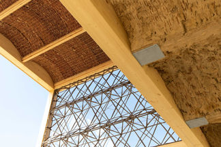 The hybrid earth-willow-timber ceiling components not only enhance the building's structural function but also introduce a distinctive architectural character that reflects a thoughtful integration of form and materiality. The combination of willow, earth, flax and wood demonstrates how challenges inherent to natural materials can be transformed into opportunities, empowering architects to actively shape and design change. These materials and the novel processes involved in their fabrication act as design drivers, inspiring new approaches to architecture that merge sustainability with design exploration. By embracing these emerging materials and methods, the repertoires of design and construction possibilities can expand, paving the way for creative, environmentally-conscious solutions that redefine the boundaries of architectural expression.